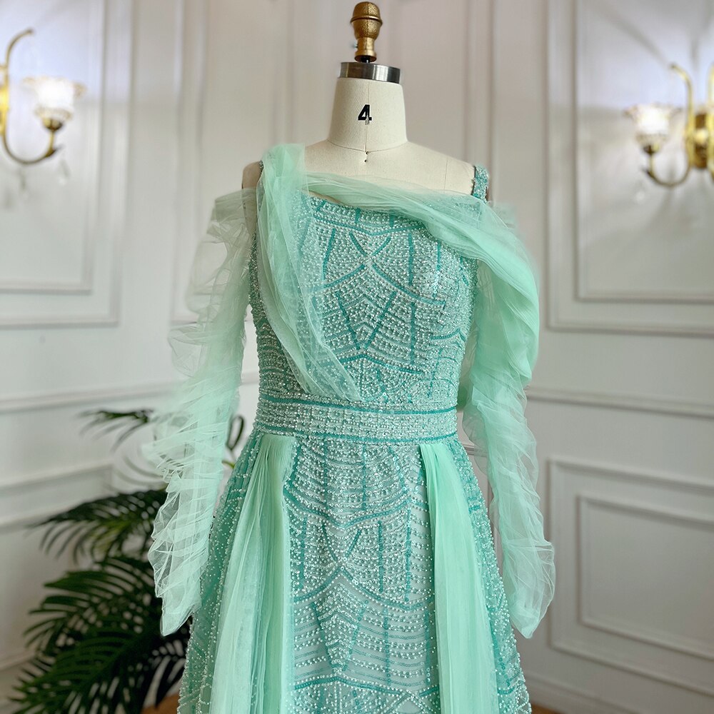 Muslim Mint Over Skirt A Line Beaded Luxury Dubai Long Evening Dresses Gowns 2025 For Women Wedding Party LA71924