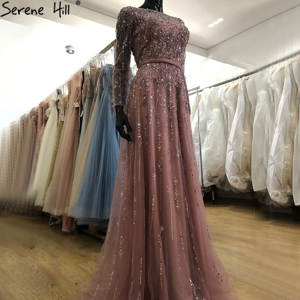Muslim Navy Blue Luxury Evening Dresses Gowns 2025 A-Line Beaded Crystal For Women Party LA71145