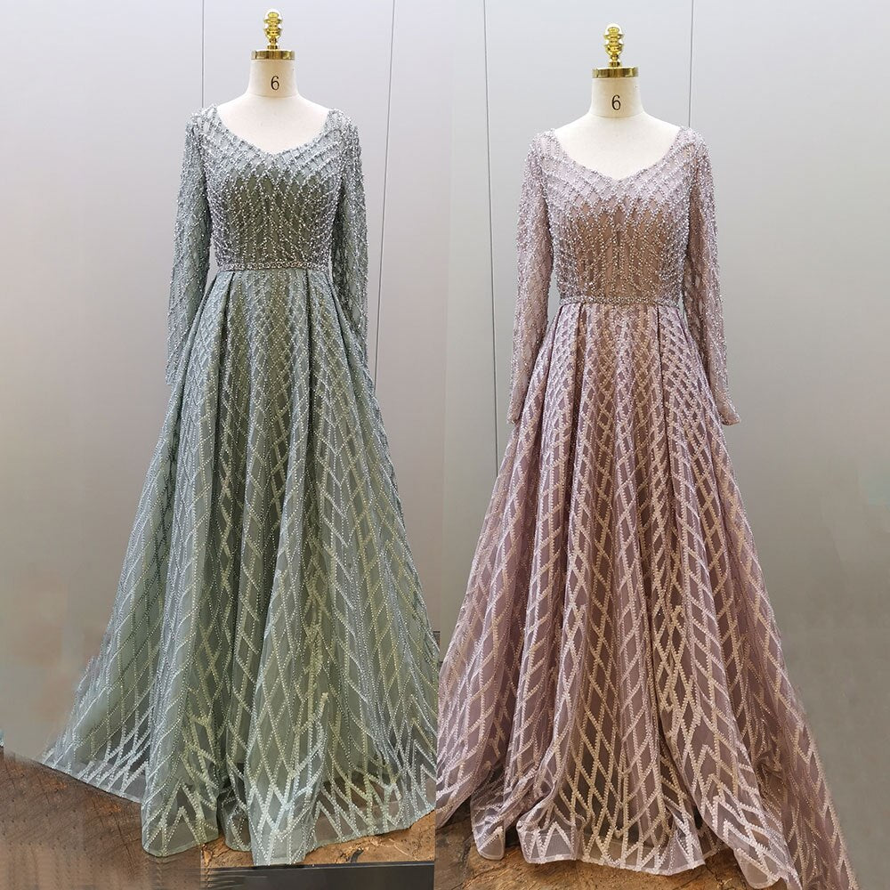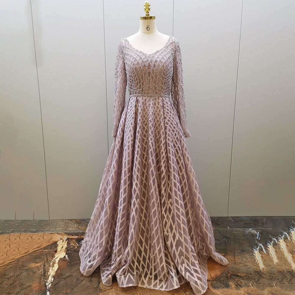 Muslim Pink A Line Luxury Beaded Sexy Sweetheart Evening Dresses Gowns For Women Party 2025 LA71811