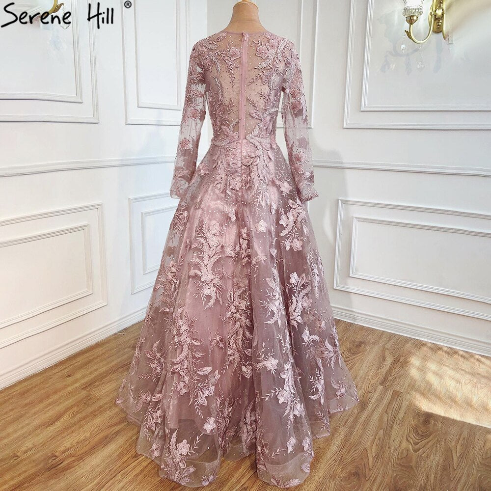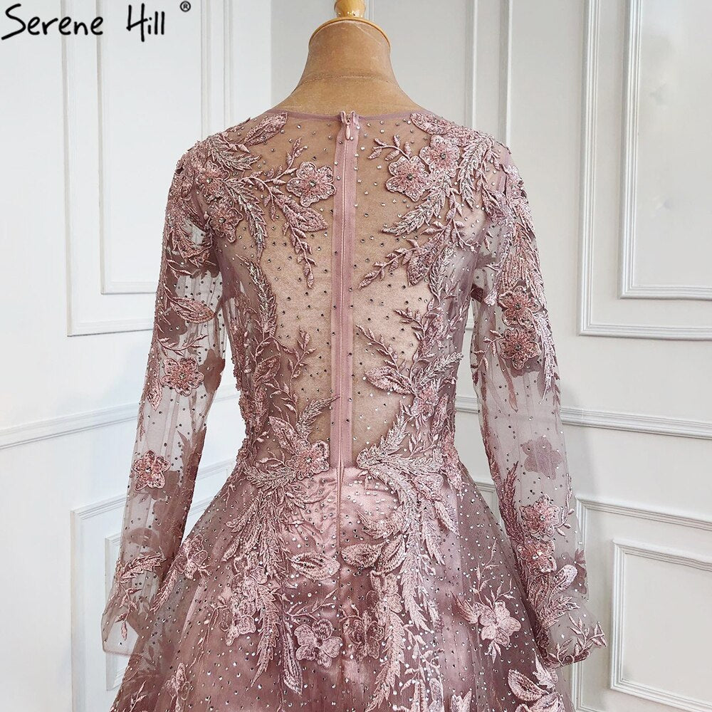 Muslim Pink Beaded Lace A-Line Luxury Long Crystal Evening Dresses Formal Gowns For Women Party 2025 LA70708
