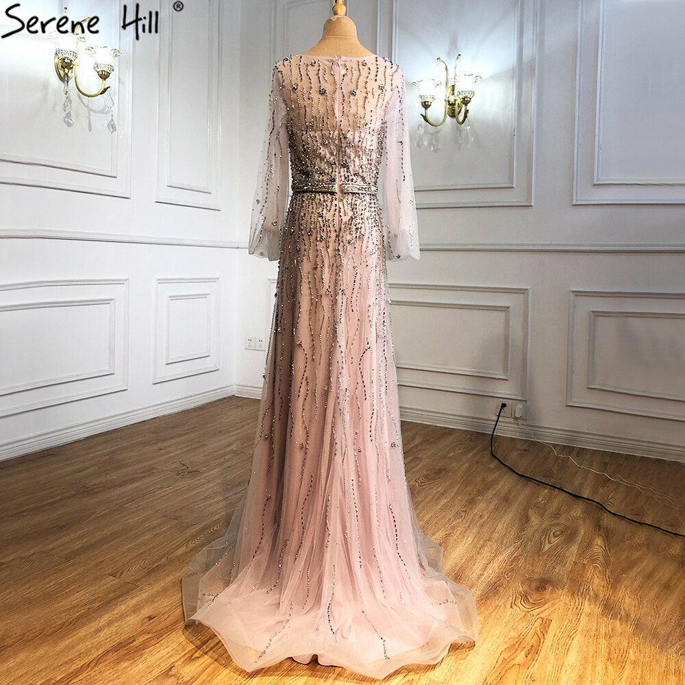 Muslim Pink Luxury Evening Dresses Gowns 2025 A-Line Beading Sparkle Sexy Formal Dress LA70972