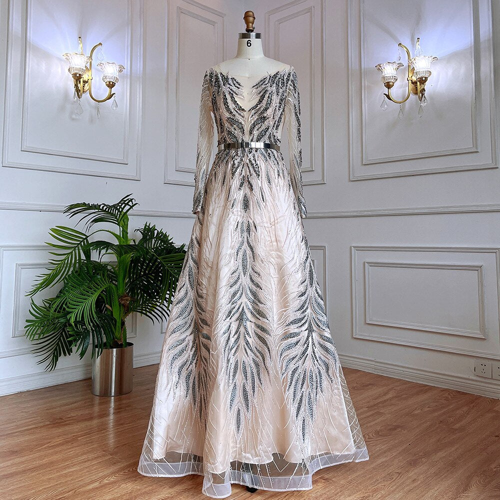 Muslim Purple A Line Lace Beaded Arabic Luxury Evening Dresses Gowns 2025 For Women Wedding Party LA71930