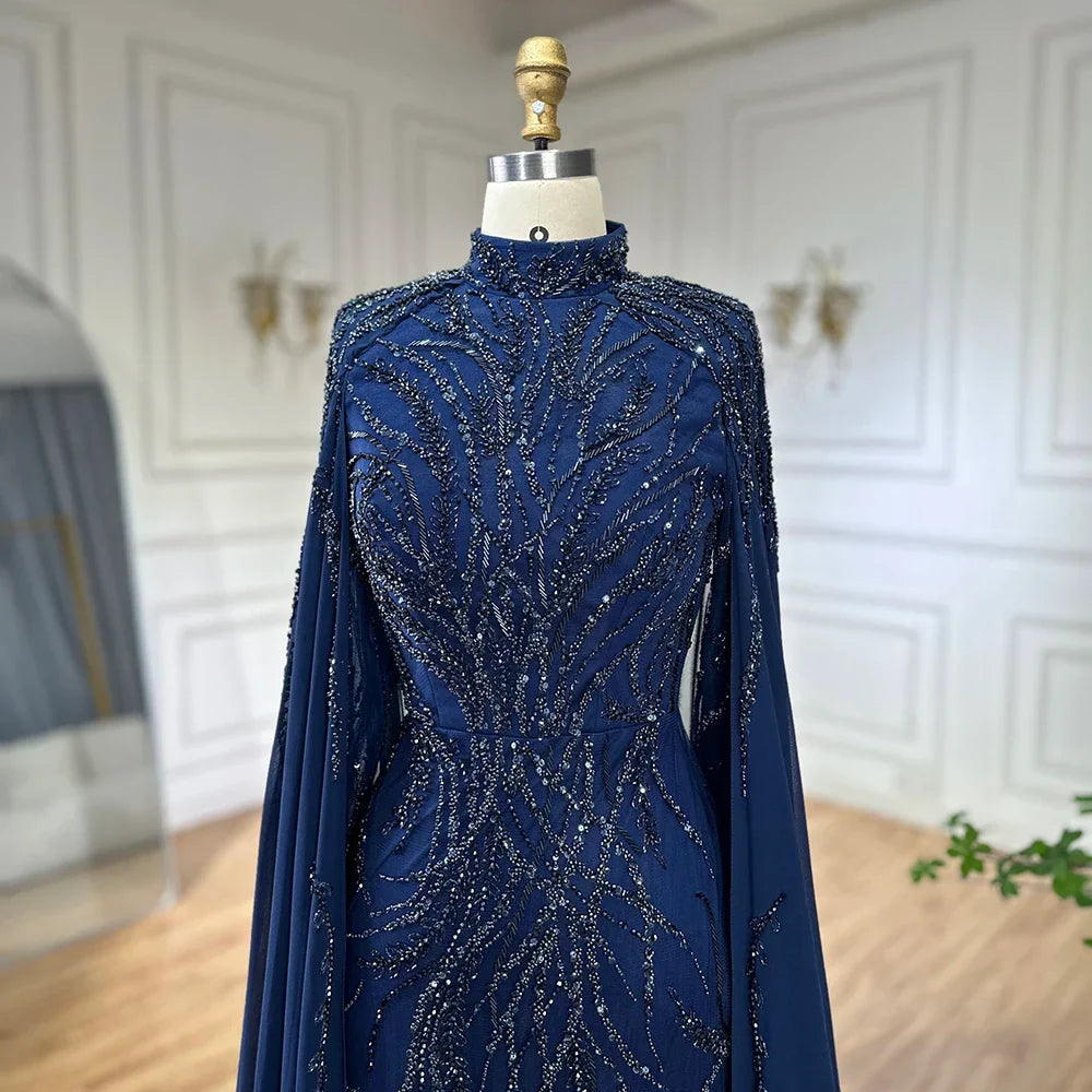 Muslim Sage Green Mermaid Cape Sleeves Beaded Satin Luxury Evening Dresses Gowns for Women Party 2025 LA72413A