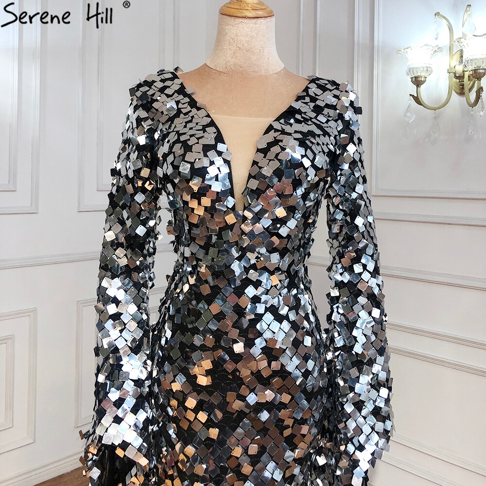 On Sale no return no refund Muslim Silver Mermaid Evening Dresses Gowns 2025 Flare Sleeves Elegant For Women Party LA70650