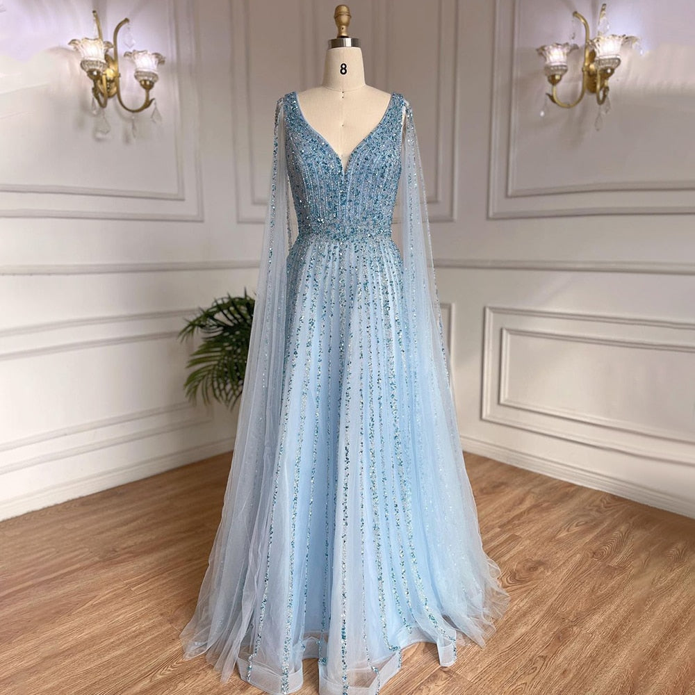 The intricate scalloped design and stunning overskirt add a touch of glamour to this high slit gown. perfect for any formal occasion. Immerse yourself in the rich culture of Dubai with this exquisite Arabic-inspired dress.