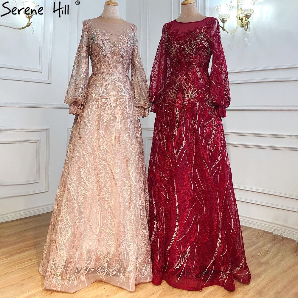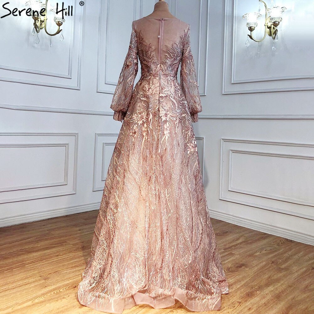 Sale Pink A-Line Luxury Evening Dresses 2025 lantern Long Sleeves Beading Lace Formal Dress LA70676