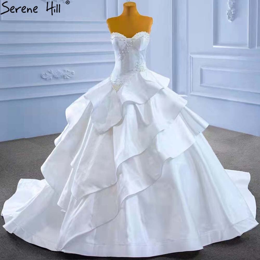 White Sweetheart Sexy Wedding Dresses 2025 Beaded Pearls Lace Up Bride Gowns HM67317 Custom Made