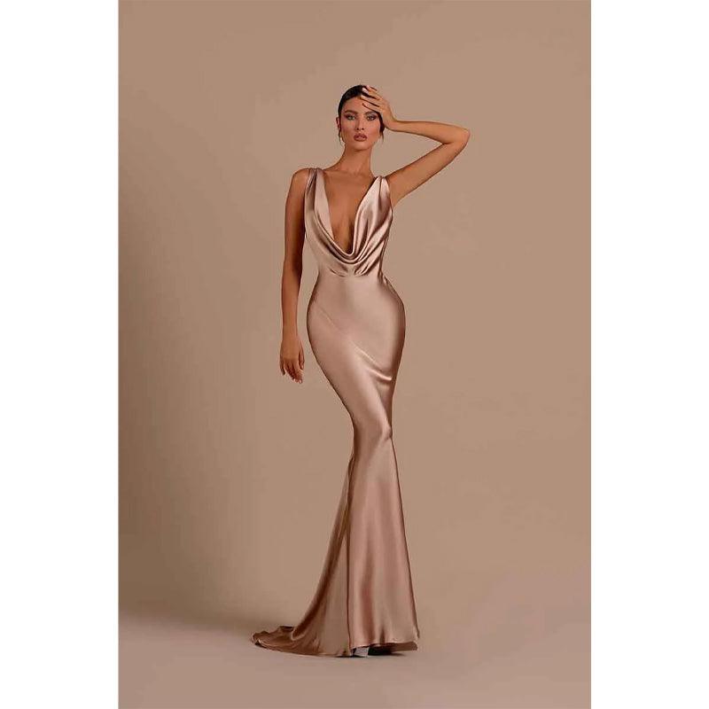 Baoleely Sexy Deep V Neck Backless Mermaid Long Formal Evening Dress