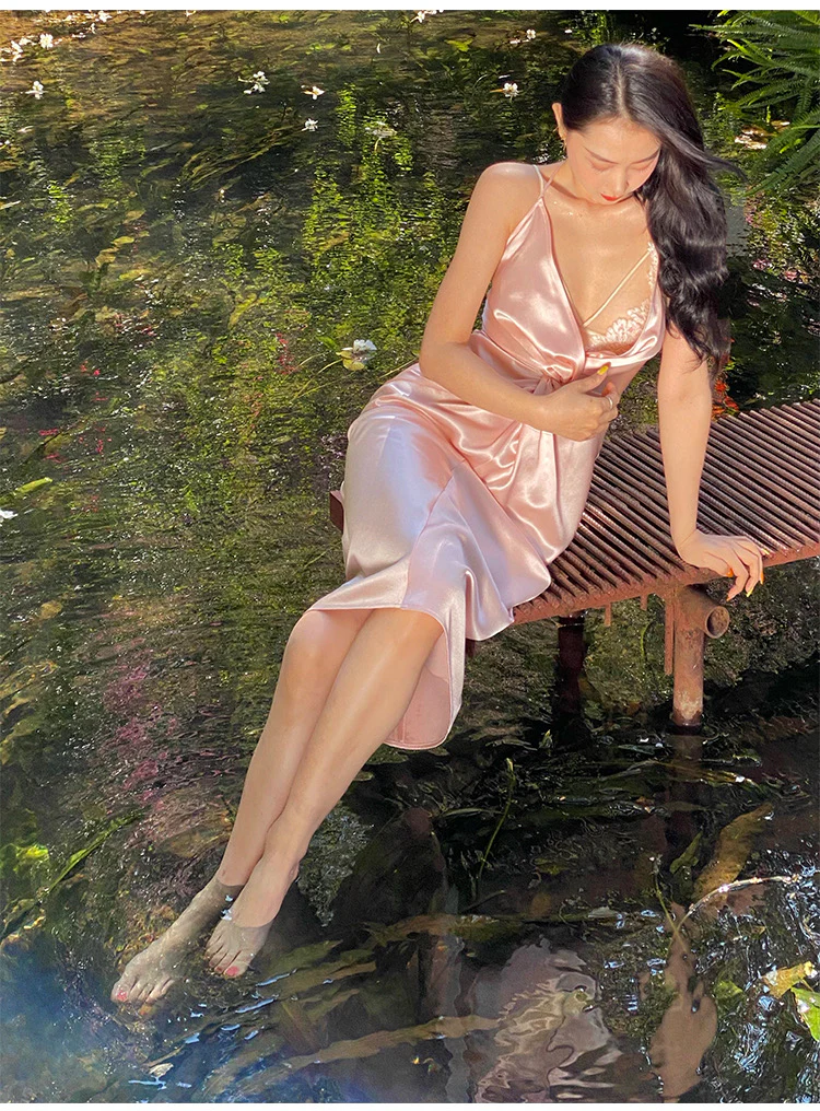 Sexy Halter V Neck Party Dress Champagne Gold Prom Evening Dress Y8211