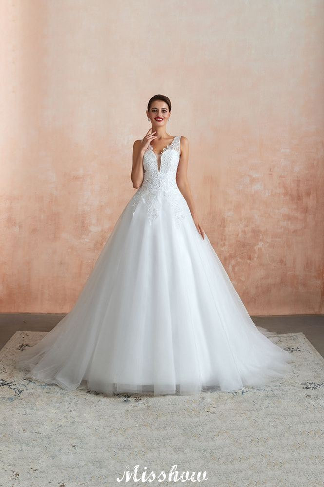 Sexy Pluging V-Neck Wedding Dress Sheer Lace Aline Bridal Gown