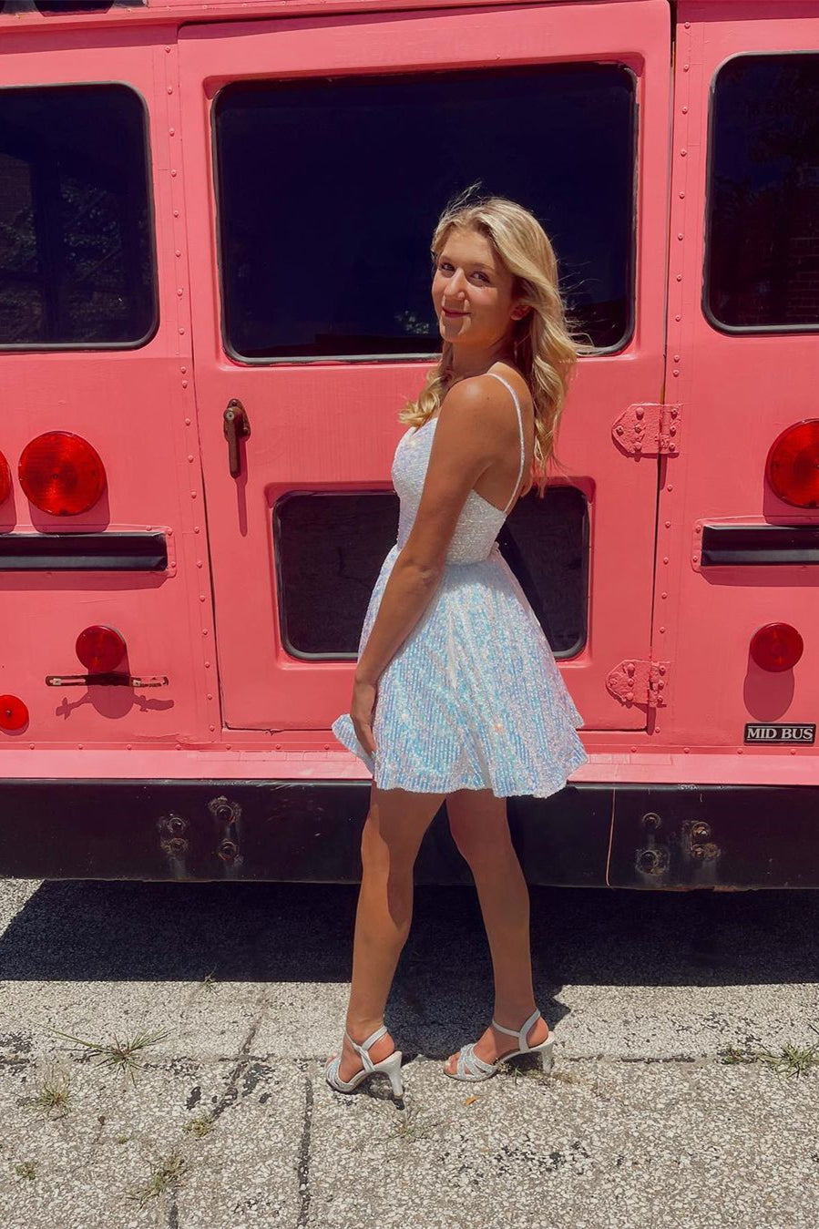 A-line V-neck Spaghetti Straps Sleeveless Sequined Homecoming Dresses