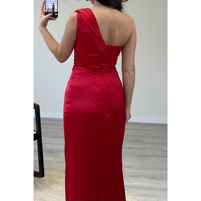 Sheath/column One Shoulder Pleast Red Long Prom Dress Evening Gown