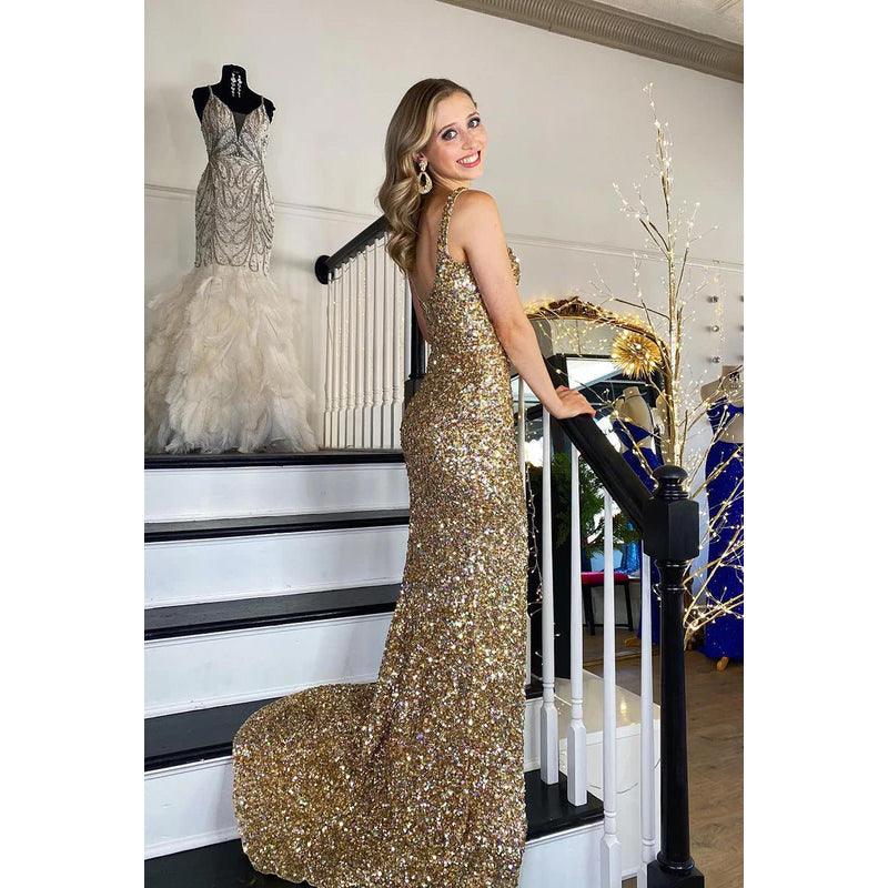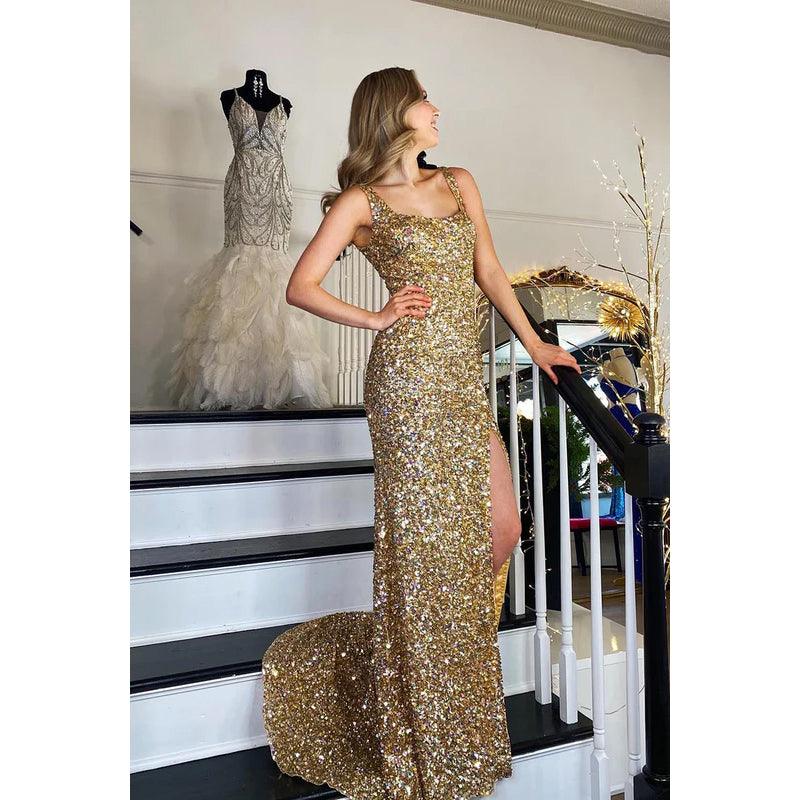 Sheath/Column Straps Sequined Split Sleeveless Prom Dress
