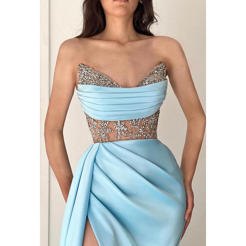 Sheath/Column Sweetheart Satin Pleats Sleeveless Prom Evening Formal Dress