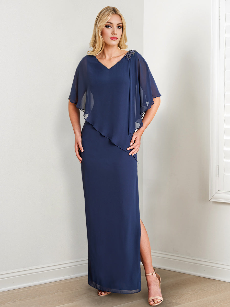 Sheath/Column V-Neck Mother of the Bride Dresses with Beading & Split Side