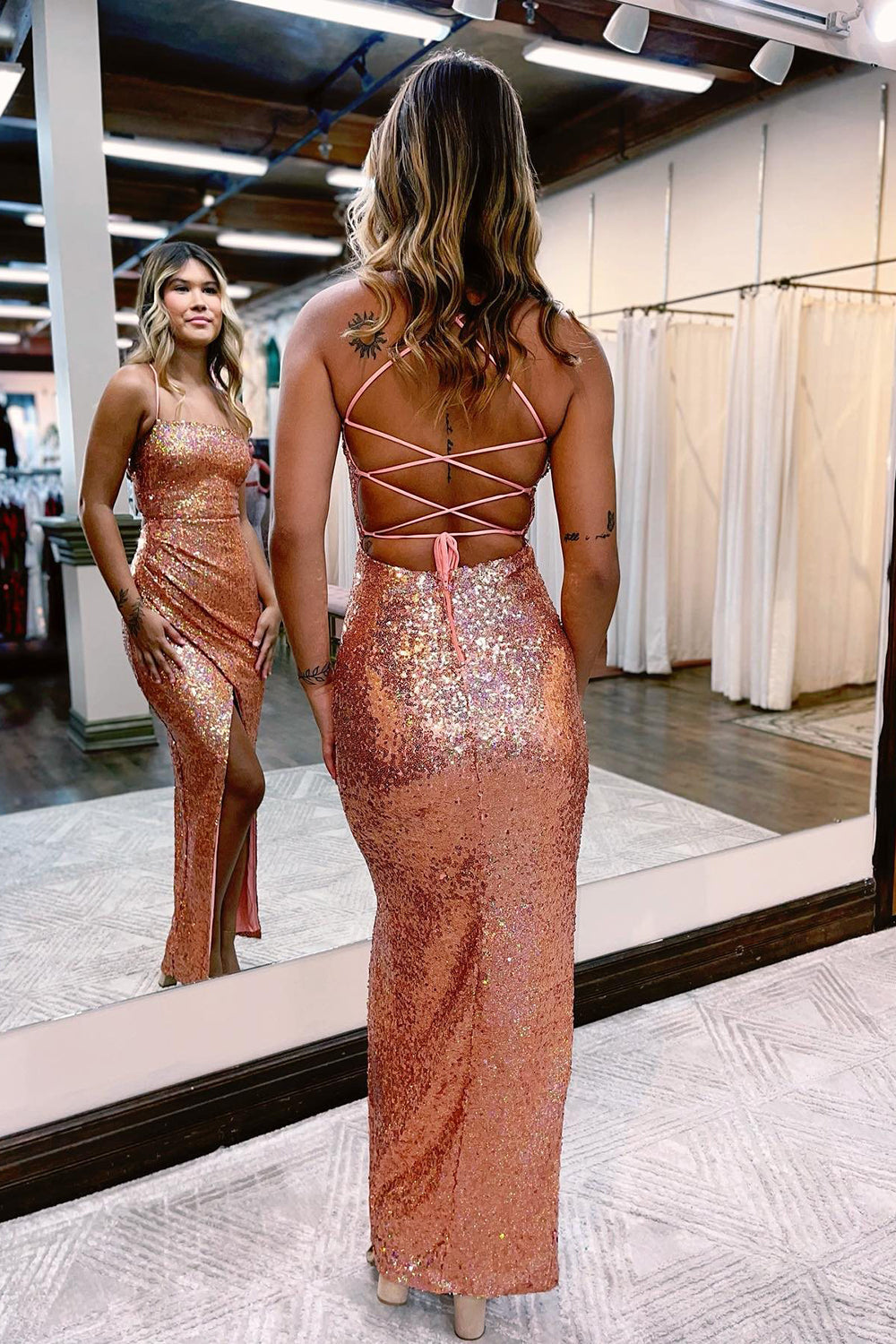 Sheath Halter Blue Sequins Prom Dress with Silt