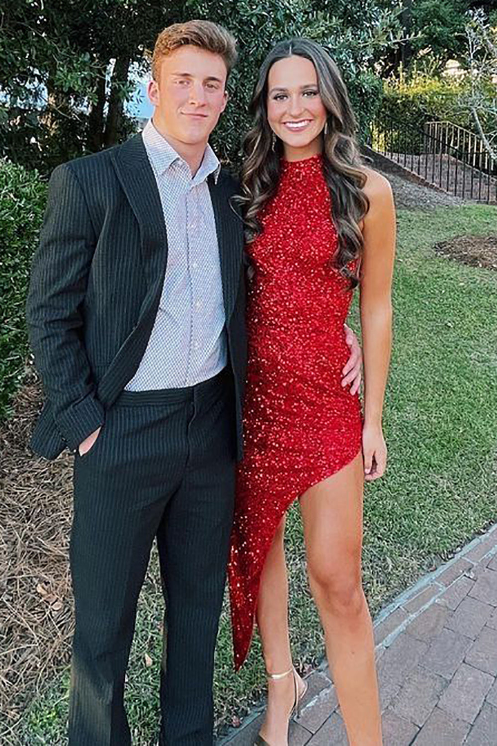 Sheath High Neck Red Sequins Asymmetrical Homecoming Dress
