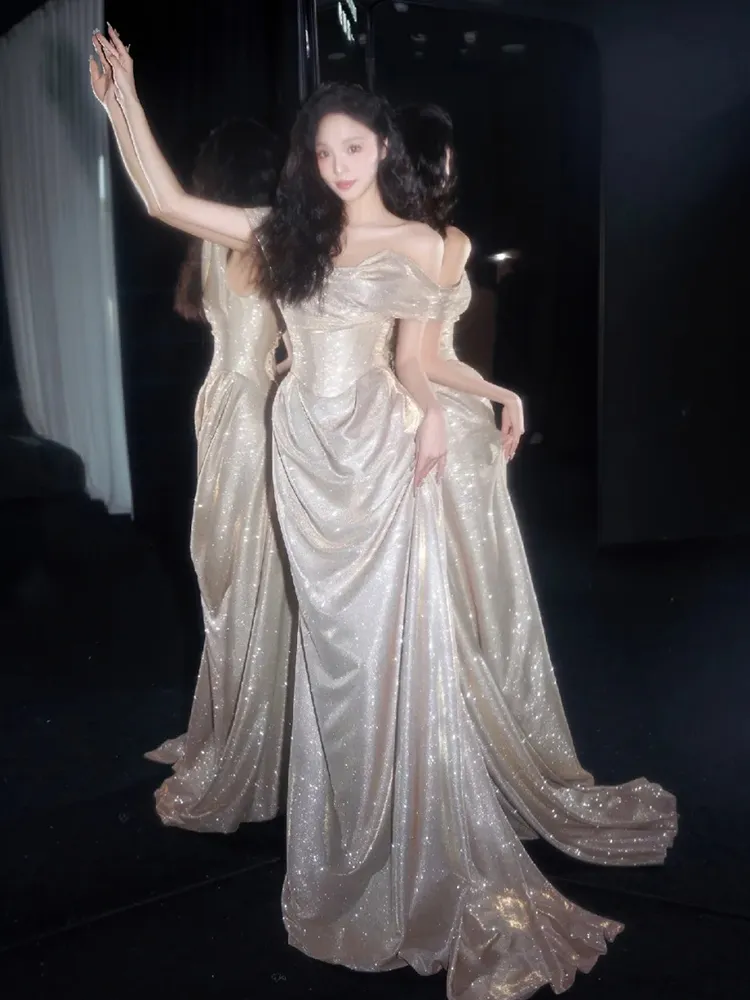 Shiny Off The Shoulder Mermaid Prom Dress Long Evening Dress Y8185