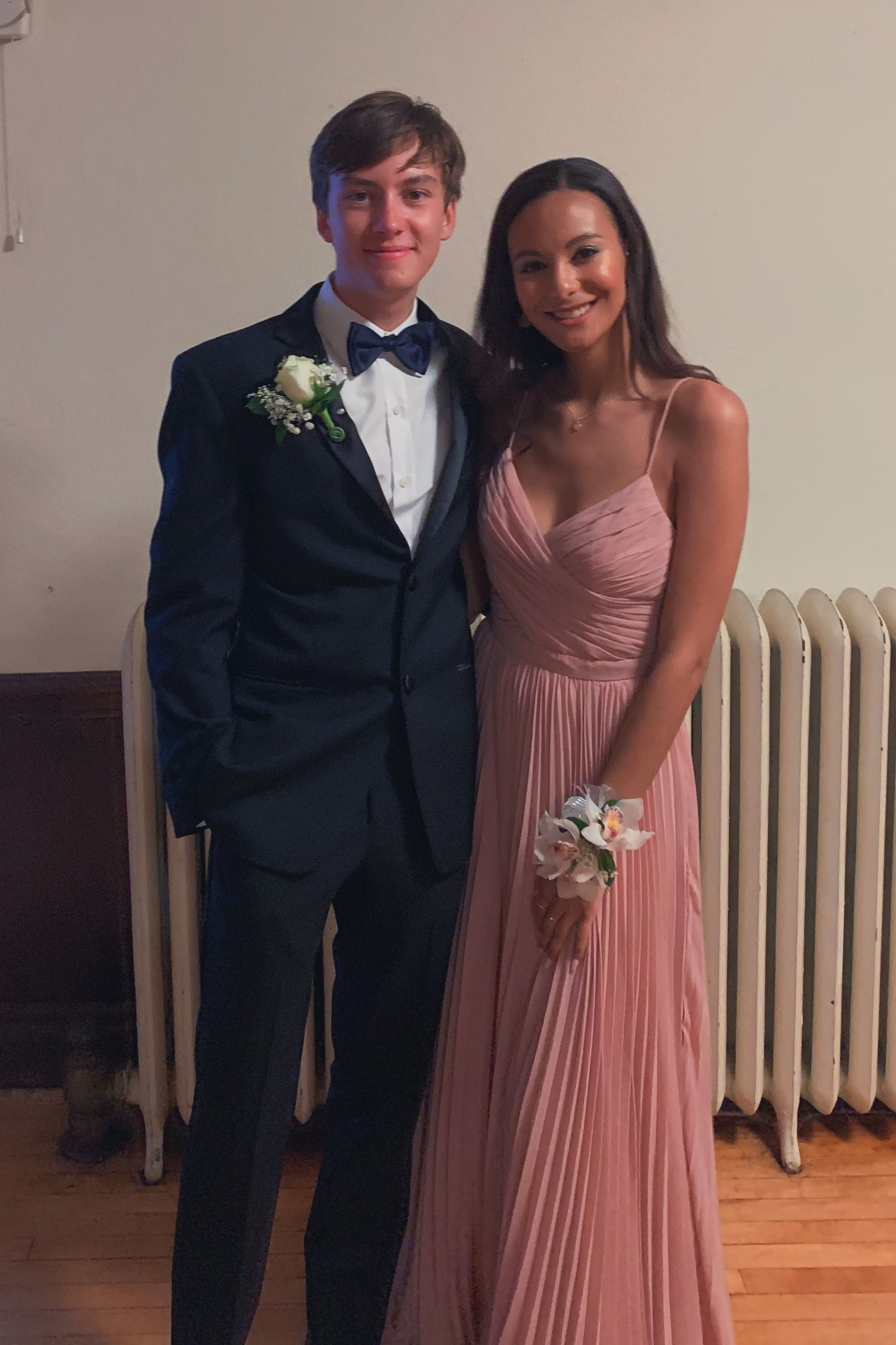Simple pink v neck pleated long evening dress pink formal dress Y5103