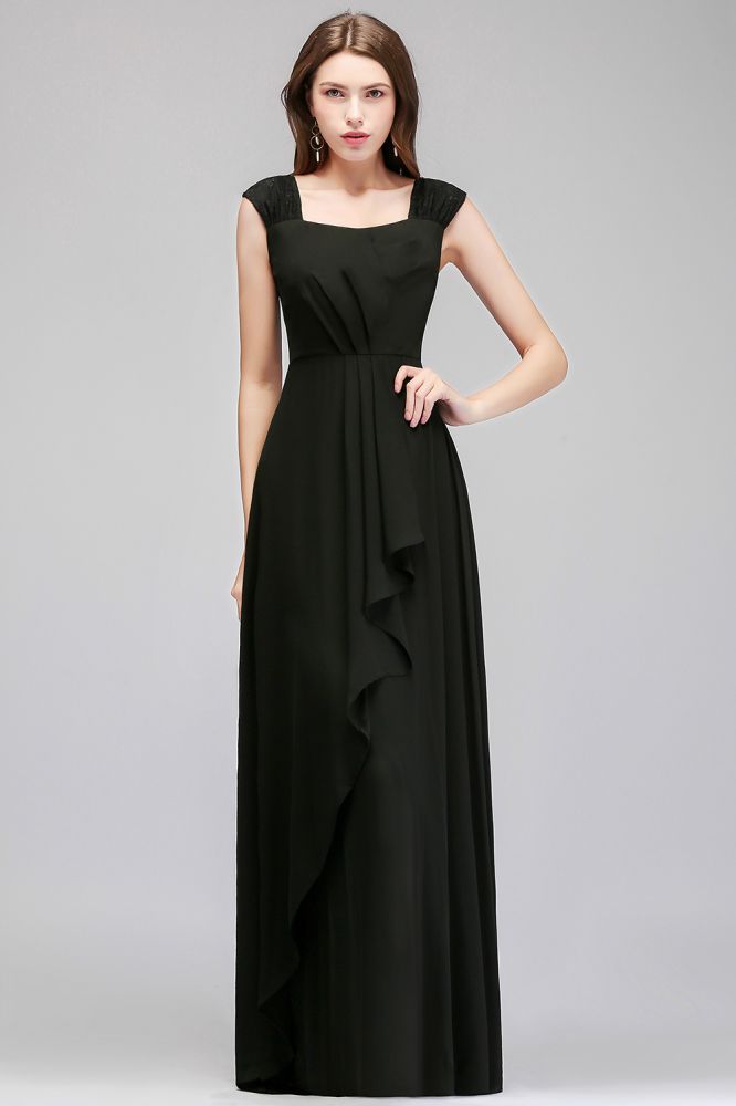 Sleeveless Ruffled Chiffon Black Bridesmaid Dresses