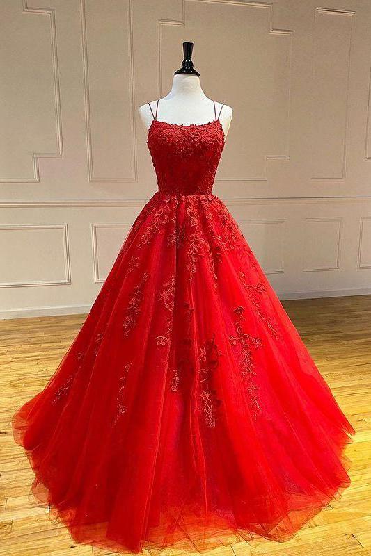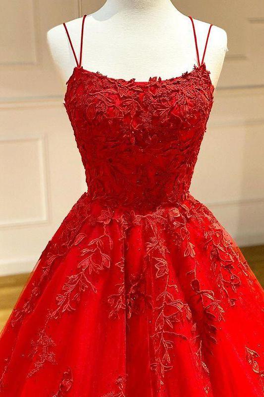 Spaghetti-Strapss Floral Lace Aline Evening Gown Sleeveless Formal Dresses