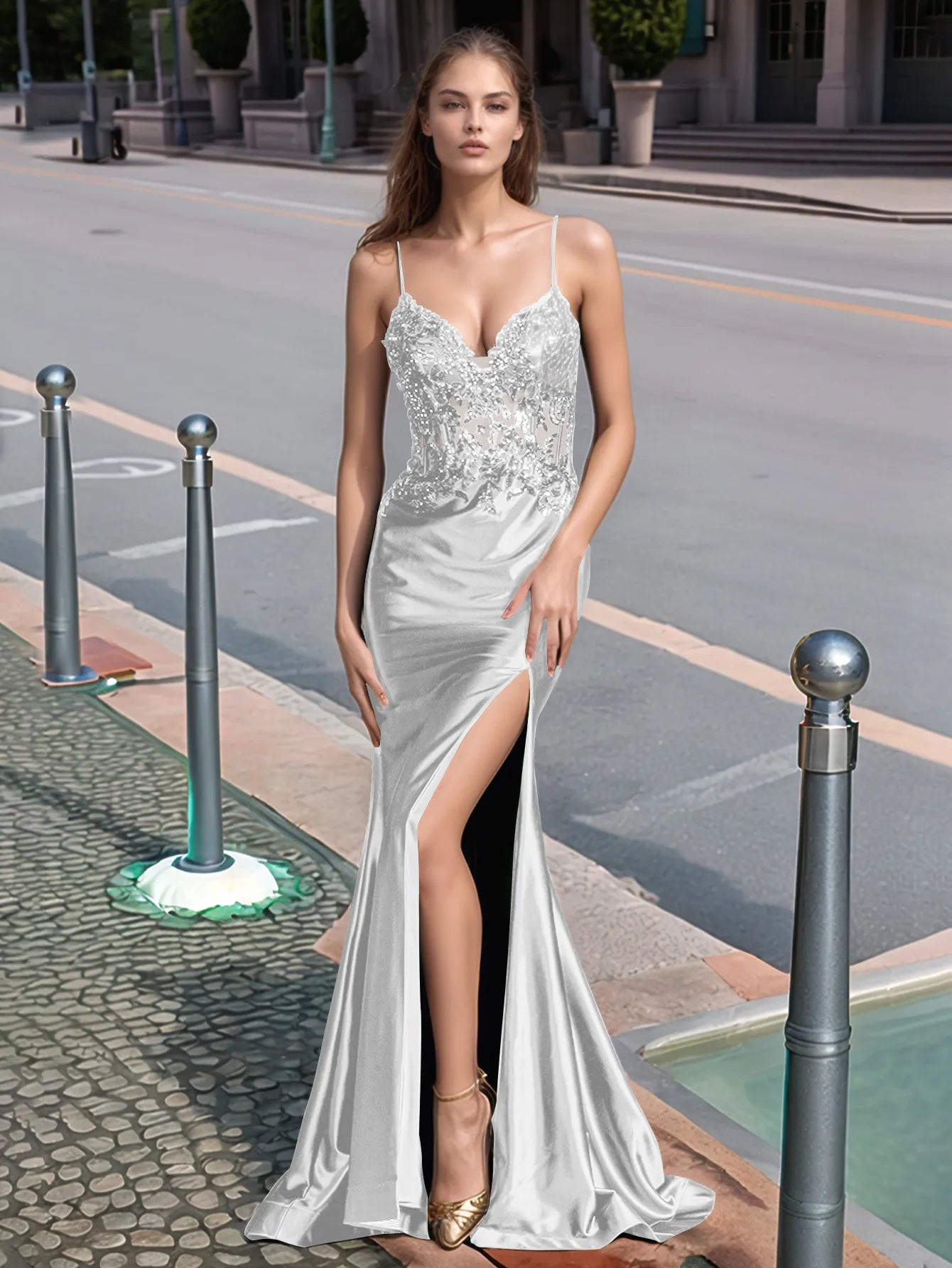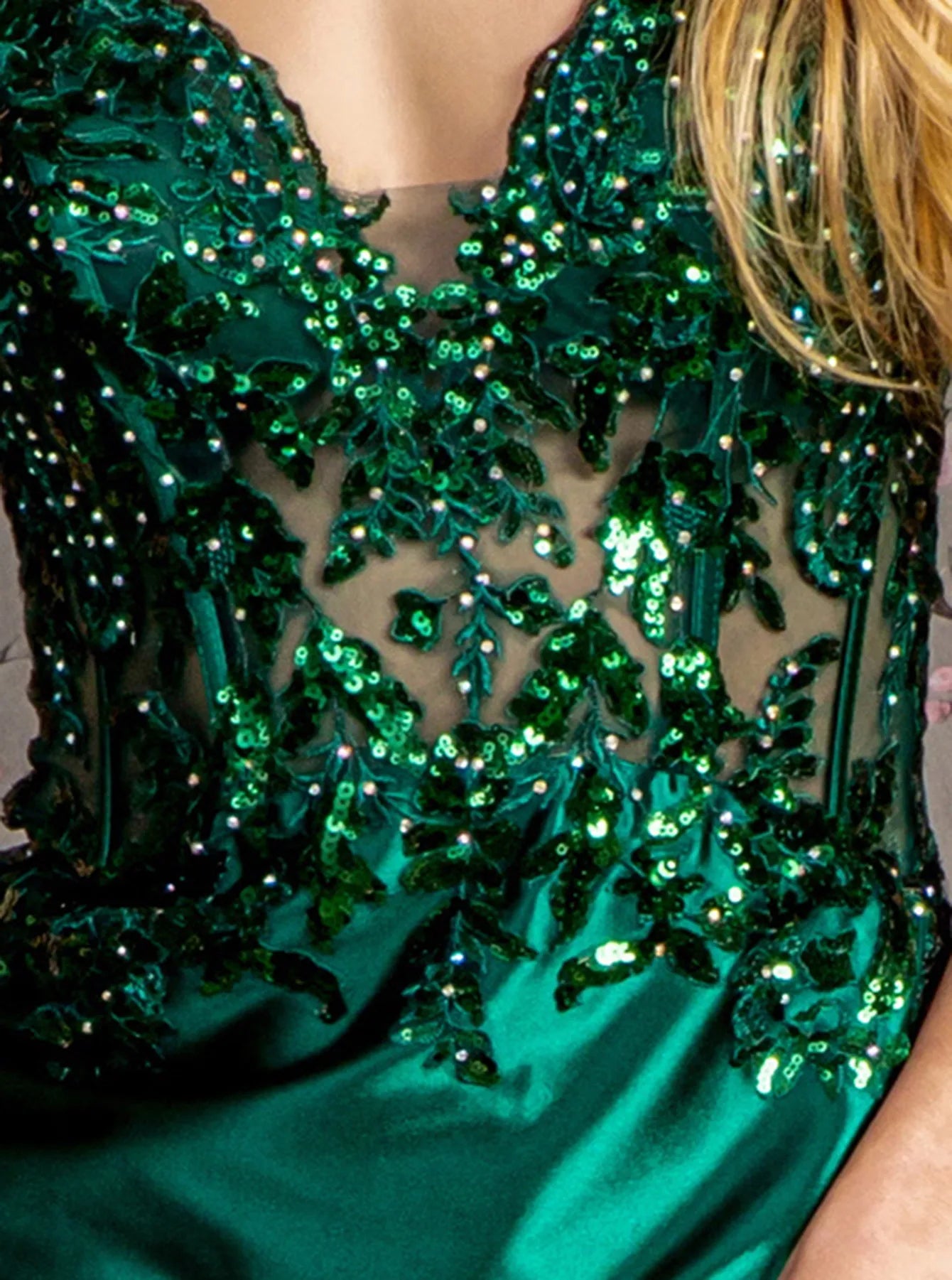 Sparkly Lace Sheer Bodice Long Mermaid Prom Dress