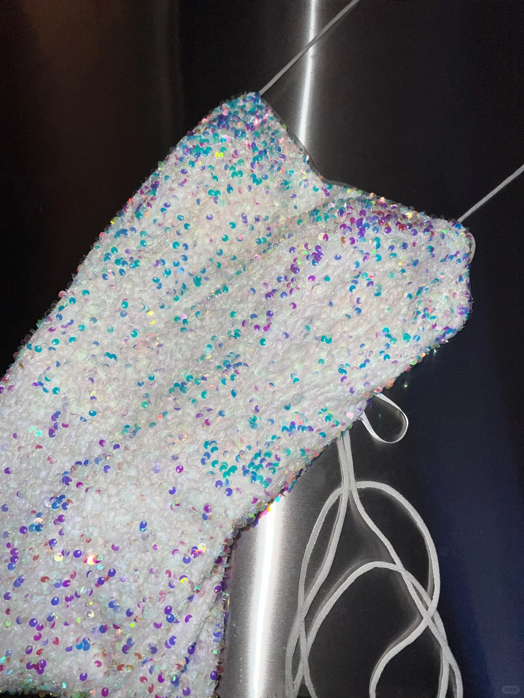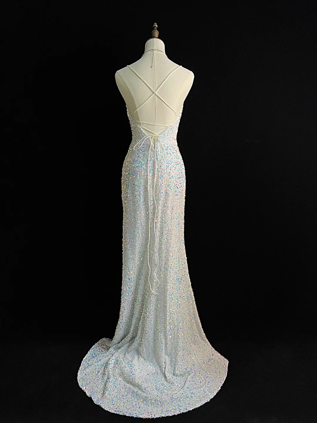 Sparkly White Spaghetti Straps Sequins Prom Dress Mermaid Slit Tassel Evening Dress Y8648