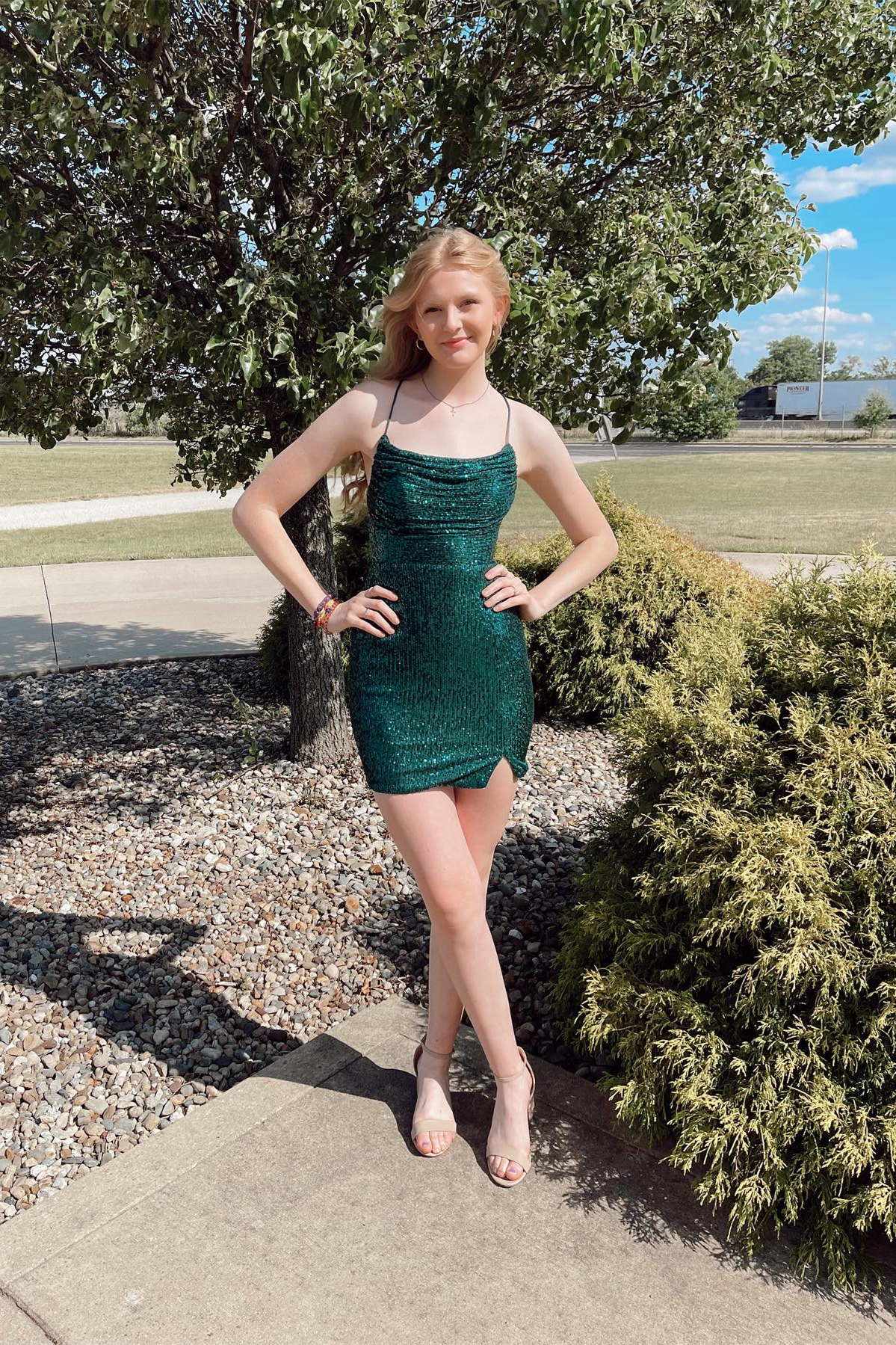Straps Dark Green Cowl Neck Tight Mini Dress Dark Green Homecoming Dress Y2948