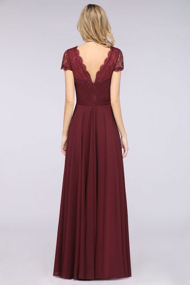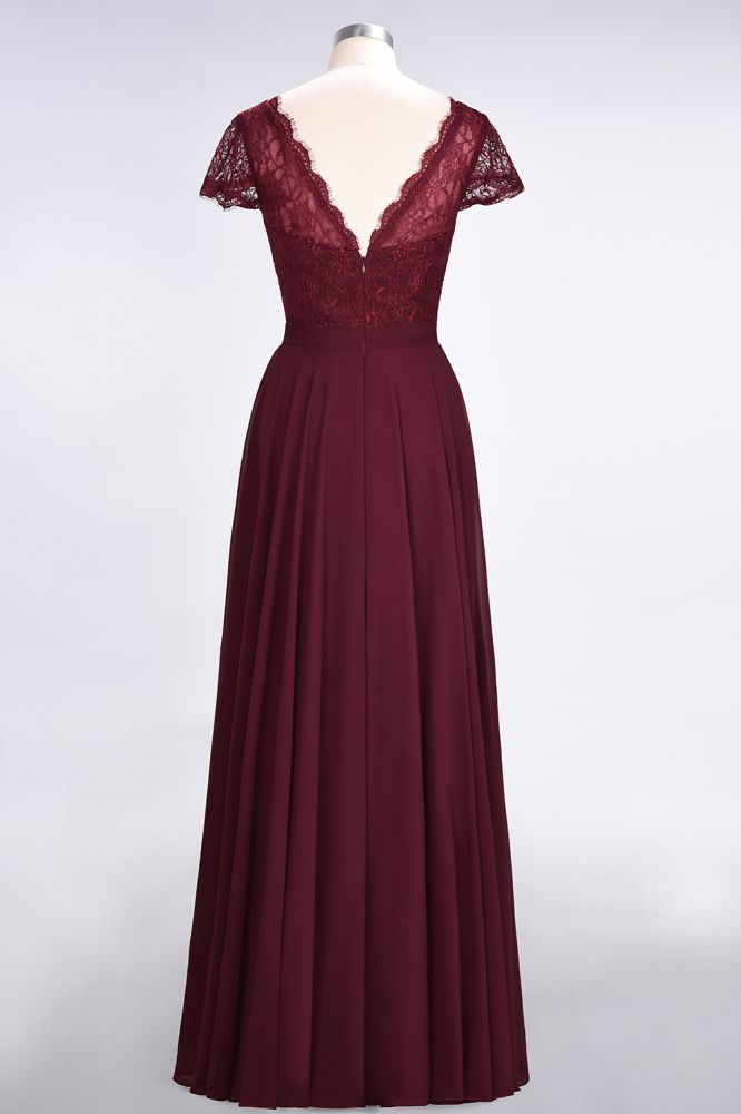 Stylish A-Line V-Neck Cap-Sleeves Floor-Length Bridesmaid Dress