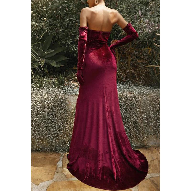Sweetheart Strapless Velvet Sheath Long Prom Evening Dress With Thigh Slit