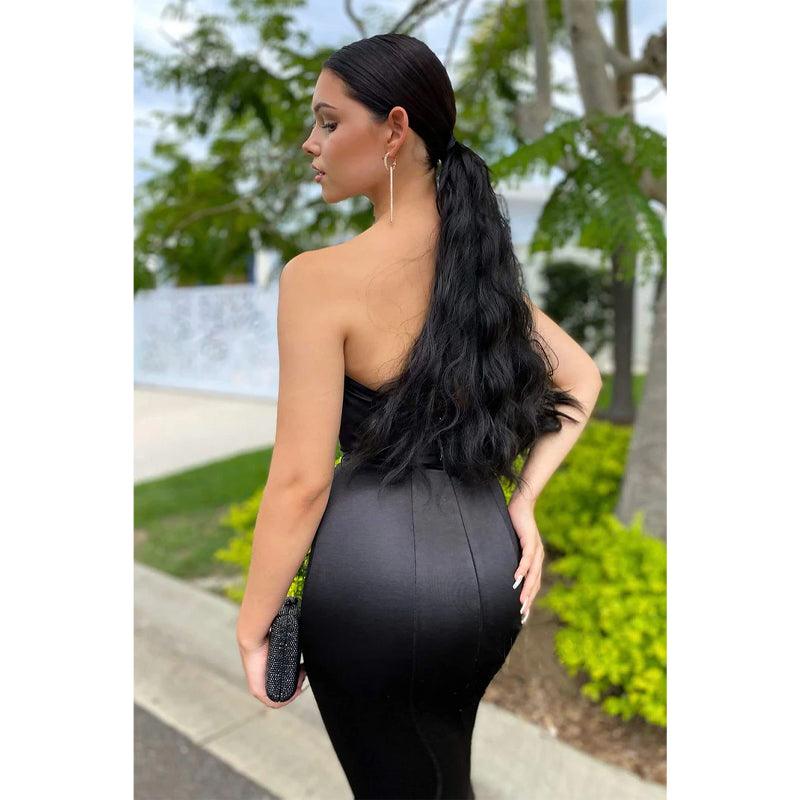 Sweetheart Black Satin Mermaid Prom Dress Long