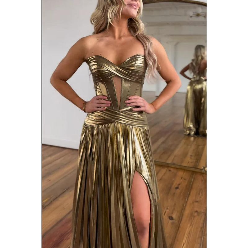 Sweetheart Strapless Sleeveless Empire with Side Slit Party Prom Evening Dress