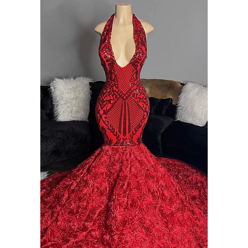 Trumpet/Mermaid V-Neck Lace Sequins Appliques Backless Sleeveless Prom Dress