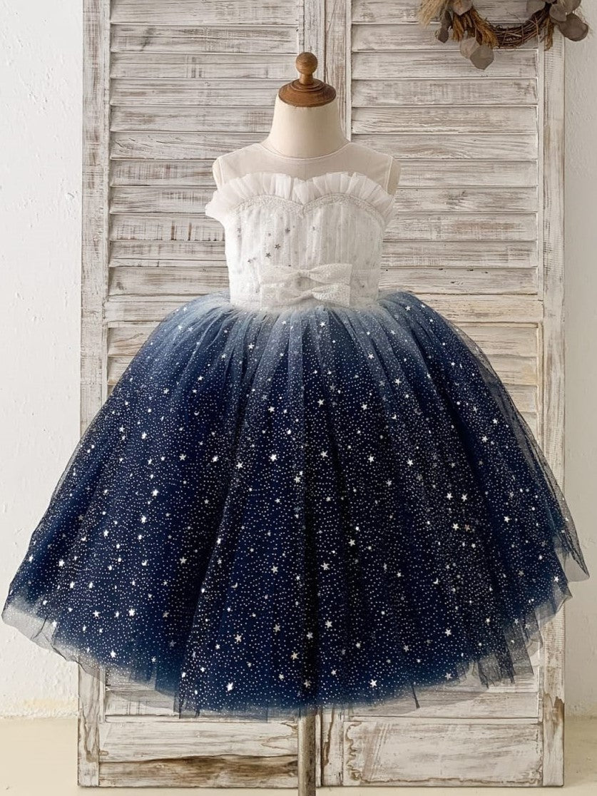 Stunning Blue Ombre Tulle Knee-length Girl Dress