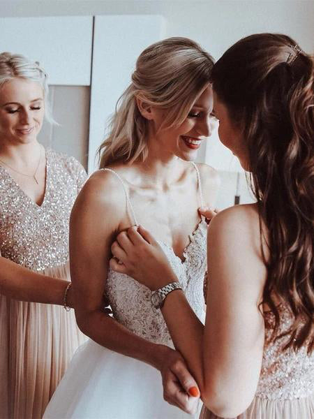 Baoleely Unique A-line Tulle Spaghetti Straps Backless Wedding Dresses Online, MW499