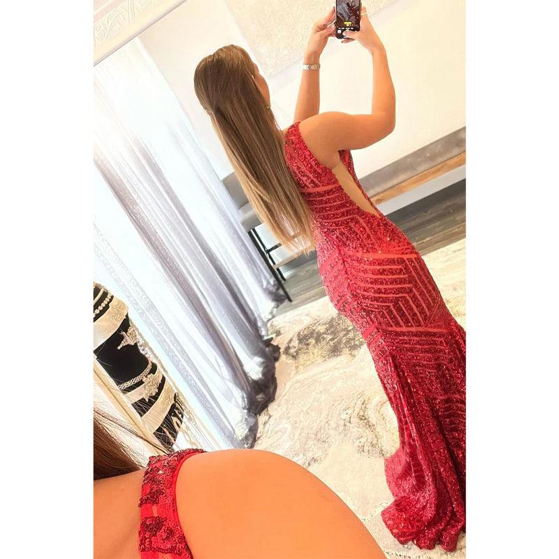 Unique One Shoulder Sequins Burgundy Prom Dress