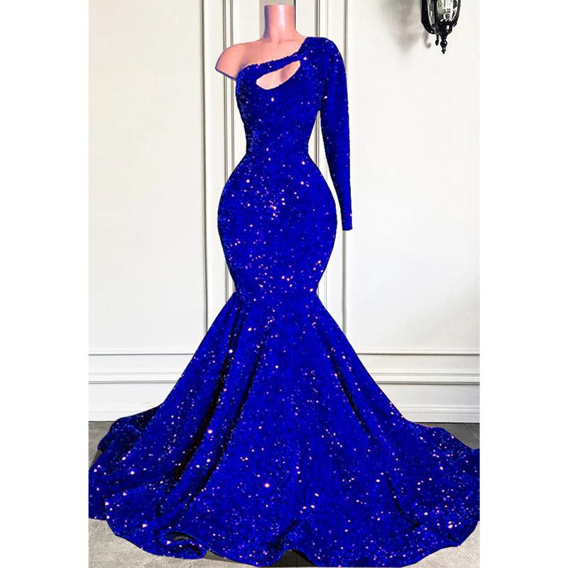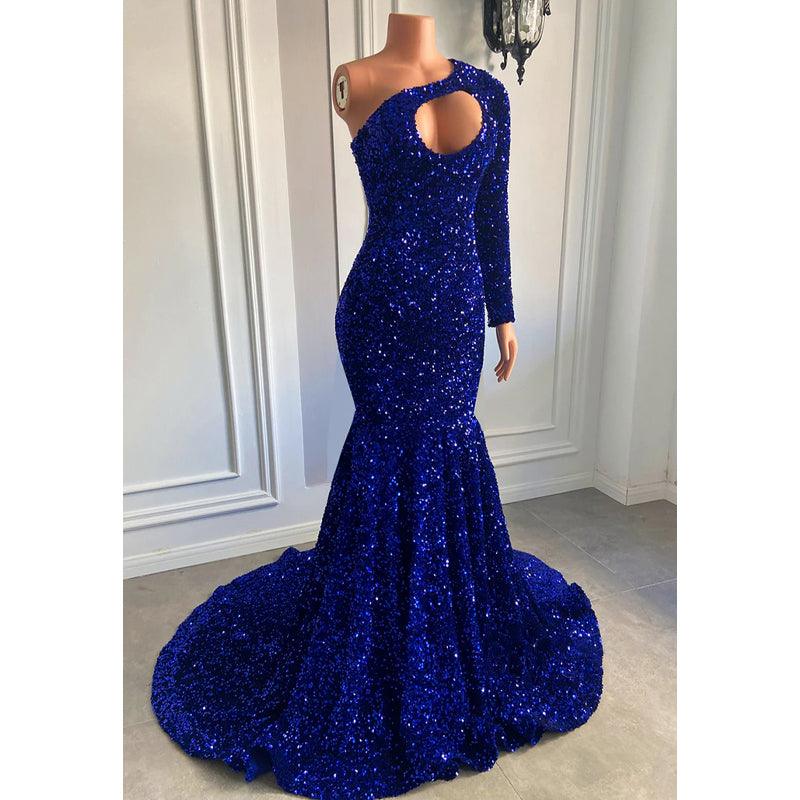 Unique Scoop Long Sleeves Sequins Sparkly Prom Dress