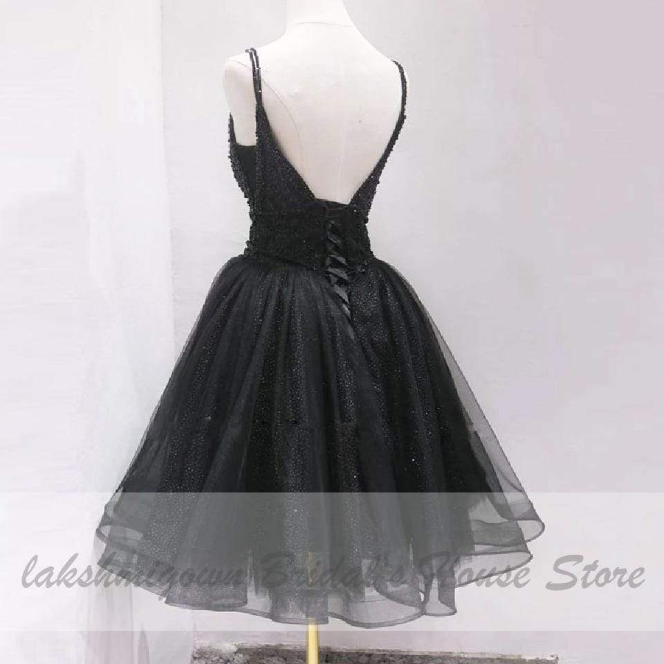 Baoleely Vintage Black Short Birdal Beaded Sexy Ball Gown Wedding Dress