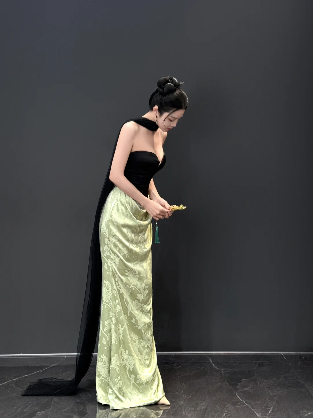 Vintage Strapless Satin Mermaid Prom Dress Long Evening Dress Y8593