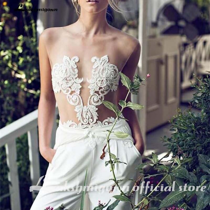 Baoleely Wedding Dresses Jumpsuit with Removable Skirt Lace Appliques