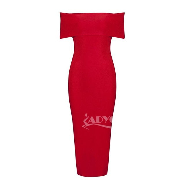 White Celebrity Runway Bandage Dress Women Black Red Sexy Off Shoulder Midi Bodycon Evening Party Dress Vestido