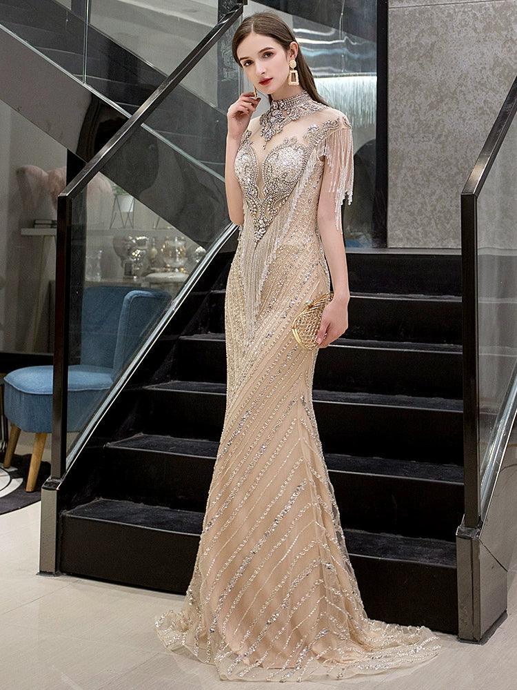 Women's Sexy Evening Dress 2024 Mermaid Prom Dresses Sleeveless for Women Long Beaded Formal Dresses