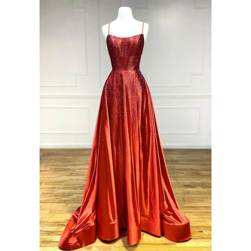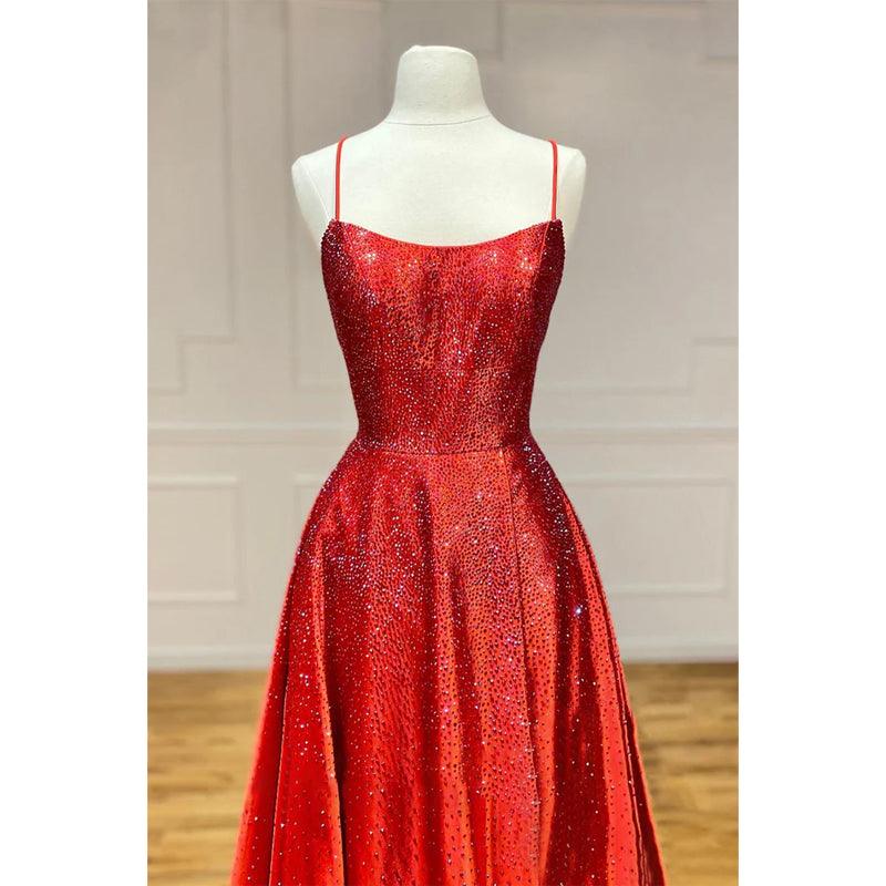 Women's Spaghetti Straps Beads Sparkly Prom Dress